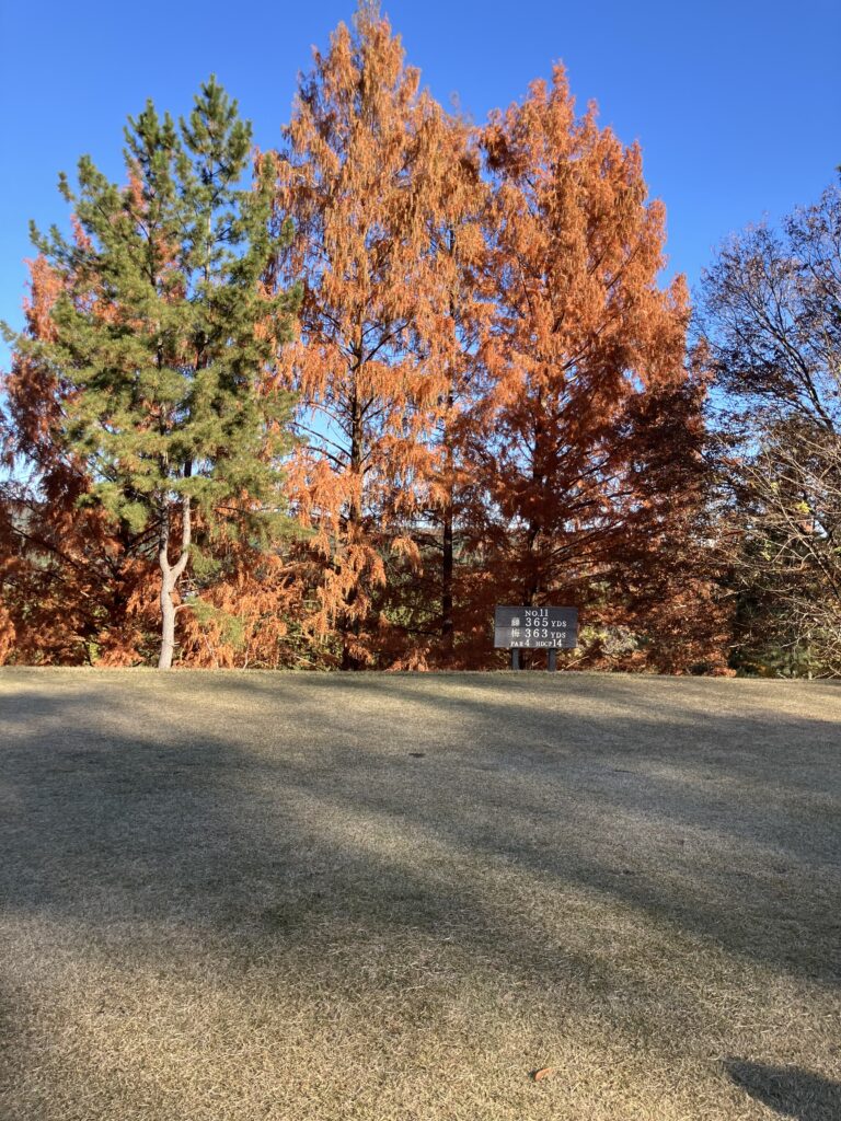 都内より標高が高いため、やや早めに色づきます。薄手のアウターがあれば快適にプレーできる、理想的な季節です。