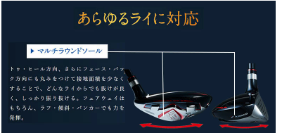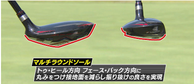 様々なライ(ラフ、傾斜、フェアウェイ)で抜けが良く、振り抜きやすさを追求した形状設計です。